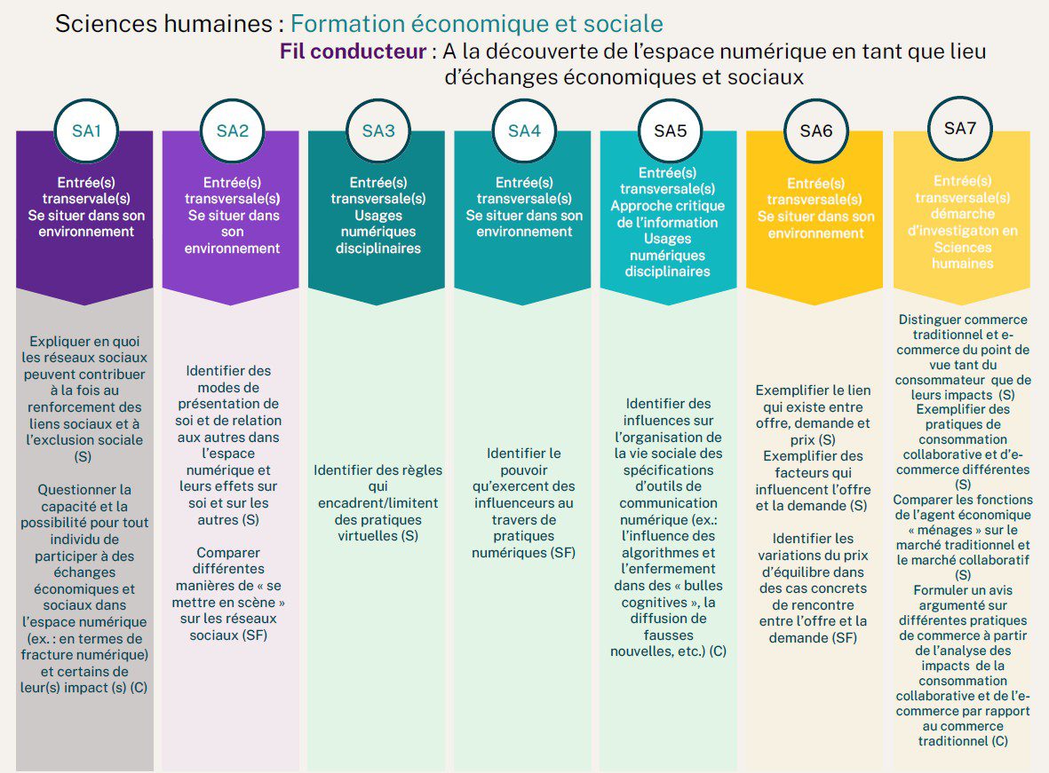 L’objet de cette entrée transversale est de mettre l’accent sur les apprentissages numériques disciplinaires. Dans ce sens, il s’agit d’une éducation au numérique et non par le numérique[1].