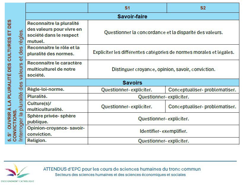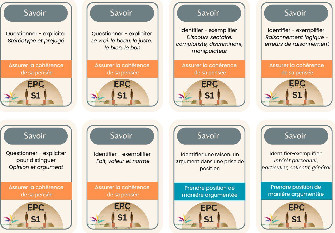 Les attendus d’apprentissage d’EPC (répartis entre l’ensemble des cours) doivent être annoncés, développés et structurés dans le cours des élèves.